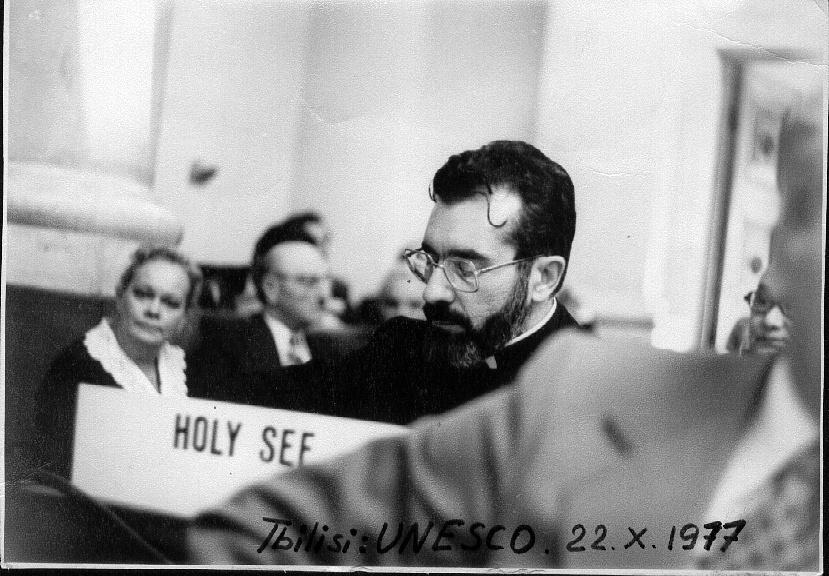 Описание: 1977: o.Mixail kak glava delegacii Vatikana na zasedanii Unesco za zaschite prirody v Tbilissi | |||